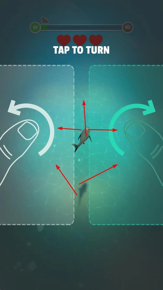1. 按照TAPTOTURN的提示点击屏幕来转向,这一操作对于操控鲨鱼至关重要,能保证你顺利开启冒险之旅。