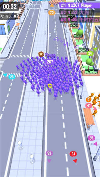 《拥挤城市》中文免费版是一款超有趣的大型竞技游戏。进入游戏,玩家将扮演特定颜色的小人,在游戏地图上四处寻觅与自己小人颜色一致的同伴,大家携手组成一支规模庞大的人群队伍。要知道,队伍人数越多,你能获得的分数也就越高。而且在游戏过程中,还能与其他玩家所带领的人群展开激烈对决,比比看究竟谁能脱颖而出、赢得胜利。心动不如行动,快来试试吧!