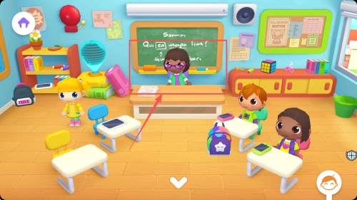 2、置身于教室场景里,专注观察黑板上的内容,悉心聆听老师提出的要求,依据提示循序渐进地完成各项学习挑战任务。