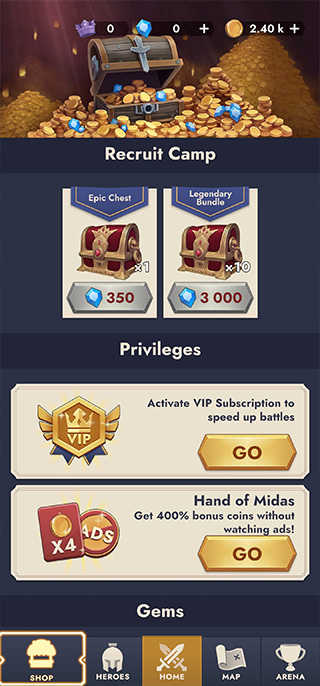 在你的小型军队里集结传奇英雄,从而更迅速地打击敌人!每个角色都具备独一无二的技能与能力,能够瞬间左右战局!
