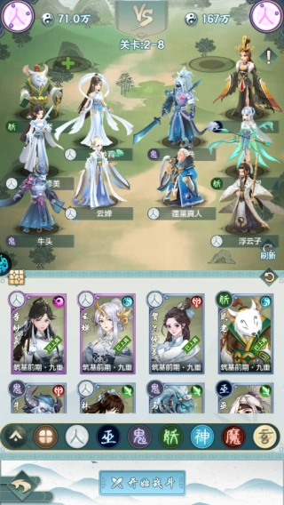 5、进行布阵操作时,能够对主角的神通以及法宝做出调整。依据敌方所排出的阵容情况,去摸索并确定最为合适的搭配方式。