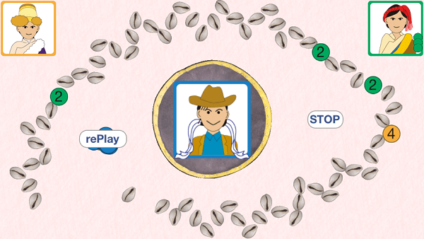 1. 把所有贝壳按照顺时针方向,从外向内摆成漩涡形状。每个贝壳之间留出一个空隙作为棋位,总共会形成六十五个棋位。以最外侧的贝壳边缘作为起点,最内侧的贝壳边缘作为终点。在中心位置放置骰碗和骰盘。
