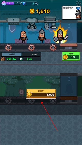 1、凭借自己杀敌获取的金币,你能够迅速升级工厂里的所有工具,并扩大工厂面积。