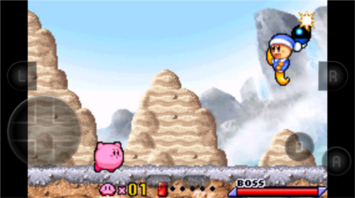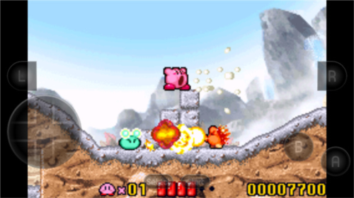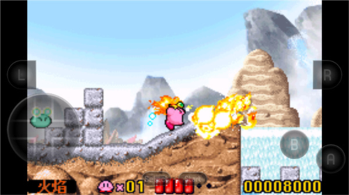 5、游戏左右两侧的按钮均用于操控星之卡比,按钮B的功能是星之卡比的复制技能,能把敌人的技能复制下来再用于攻击敌人。