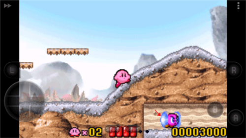 肚子鼓起时按下B键,角色会吐气,这一动作具备攻击力,不过攻击距离不长。当肚子处于空瘪状态时,按下B键则是吸气,此操作能吞掉敌人,即便中间隔着墙也能将敌人吸过来。要是吸到拥有特殊能力的敌人,只需按一下十字键的下键,就能复制该敌人的能力。