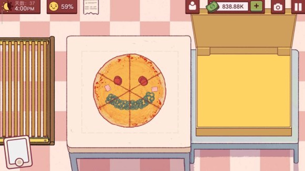 3三十多天后,要是攒够钱了,优先考虑买自动切披萨助手(不过要是能把其他配料也买齐的话,肯定先把配料备全呀)。用了其他配菜助手之后,每天的开销会变得挺大,一天可能都挣不到100块了,但好处是能解放双手,你可以根据自己的情况选择,我个人不太建议买,我当初只买了酱料助手就有点后悔了。一定要保证自己手里剩下的钱超过100块(反正我钱少了就特别不安)。到第49天的时候会遇到虫灾,会有人帮忙驱虫,但要扣30块钱(真的很心疼)。到了后期,好像只要你没出错,没多放或少放东西,就算心情值不太好,顾客也会给小费,这一点还挺不错的。