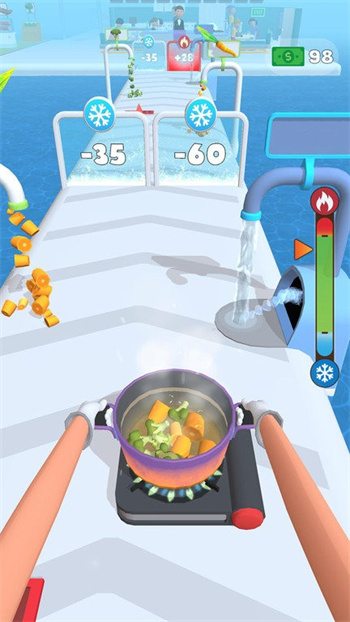 卡通风格的跑酷画面设计,细腻的食材建模,轻快愉悦的背景音乐,让你沉浸式体验烹饪的全过程。