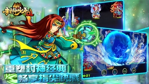 自动回合制搭配点触释放技能,辅以策略性排兵布阵,再结合封神主题的英雄组合与强力神兵灵兽助力