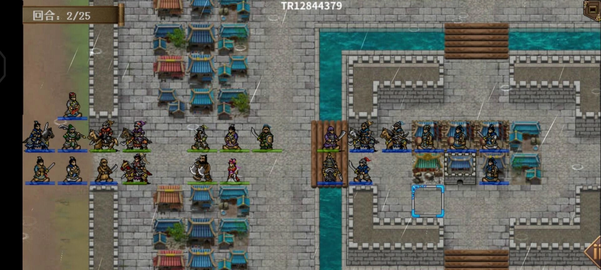 第二回合的应对策略如下:首先,敌方第一个送上门的法师已经出现,曹性和吕布各自出手攻击一次。吕布可以借助绝影马的特性,退回城池内恢复状态。宋宪需观察战局,切勿急于补刀——曹性可能难以承受伤害,因此优先选择补血、给曹性使用防御果,或者通过SL操作触发曹性的格挡(其实给曹性佩戴同心结的话,他的格挡概率会很高)。陈宫处于民房位置,能获得110点的加成来布置防水阵,行动时优先攻击多个目标,若有机会秒杀敌方将领,使用单体技能也可行。臧霸和高顺要利用好装备附带的“反击后再反击”效果,结合自身属性,很容易打出三次攻击(自身属性本就易触发双击,敌方反击后再追加一刀,总计三刀)。这一回合,高顺与魏续这一路必须解决掉两个敌兵,否则于禁不会主动靠近;若无法击杀,就通过SL操作触发双击或暴击。此外,貂蝉这回合会移动出去为臧霸增加攻击力。