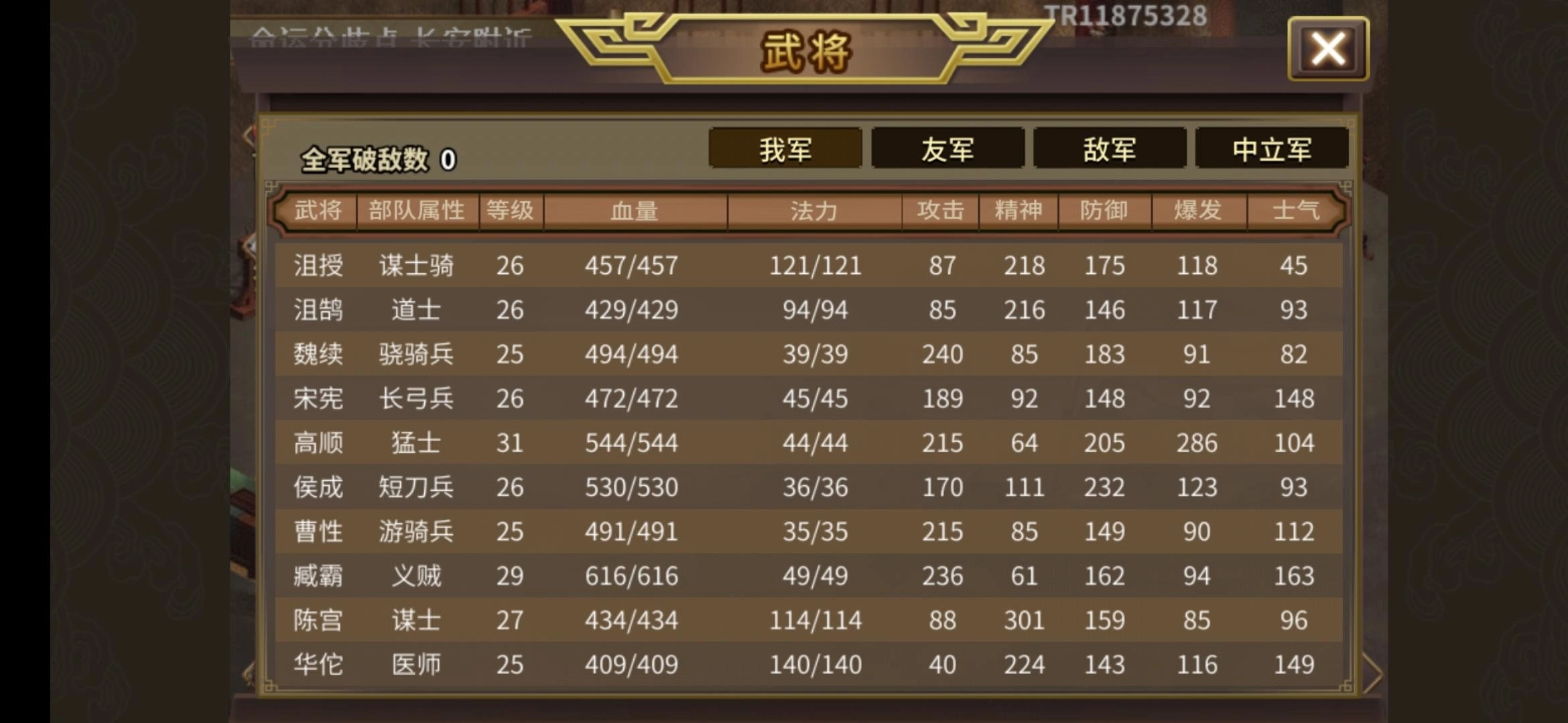 开干之前先啰嗦几句:可以算算自家全员的等级平均值,这数值就是敌方小兵的等级,敌方将领的等级会在这基础上再往上加一点。要是想让下一关打得轻松些,这关通关后的等级平均值最好控制在14.4以下——毕竟15级的敌人和14级的敌人,实力差距可不是一星半点。具体做法就是别拿印绶,让吕布直接带赤兔马跑路,我就不信有谁能拦得住骑赤兔的吕布。不过估计大部分人和我一样,就是头铁,管他呢,直接干就完事了!对了,这个算法只适用于当前周目,后面的周目我没算过,就不好说了。