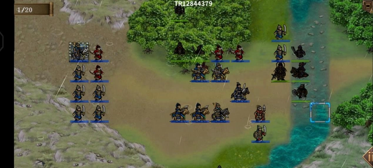 注意要点:记得多帮貂蝉补兵,因为第十六关要求等级达到15级才能顺利推进。另外敌人设有伏兵,具体是九个盗贼,触发的条件是只要我军有角色进入(8,19)、(19,19)、(8,26)、(19,26)这几个坐标区域,在回合结束的时候就会引出伏兵。就像下面这张图显示的,别看我现在血量这么低,其实都是为了测试出触发伏兵的条件才故意弄成这样的。