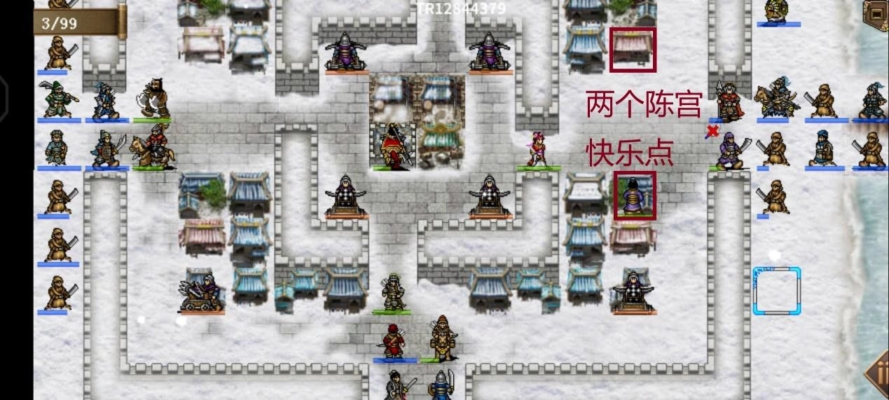 之后的基本操作大致相同,右边程昱很快就会过来,解决掉程昱后,满宠和陈宫就能支援下路了。说实话下路这三兄弟坦度挺高的,用法术攻击会比较好打。左边高顺只要状态没问题,还是能应对许褚和李典的。记得及时存档,刷天气的时候避开雪天。