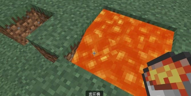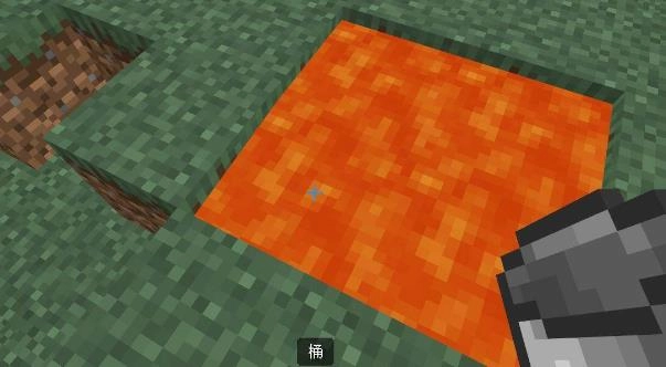 1,首先我们需要找到一块岩浆,然后拿着铁桶点击岩浆。
