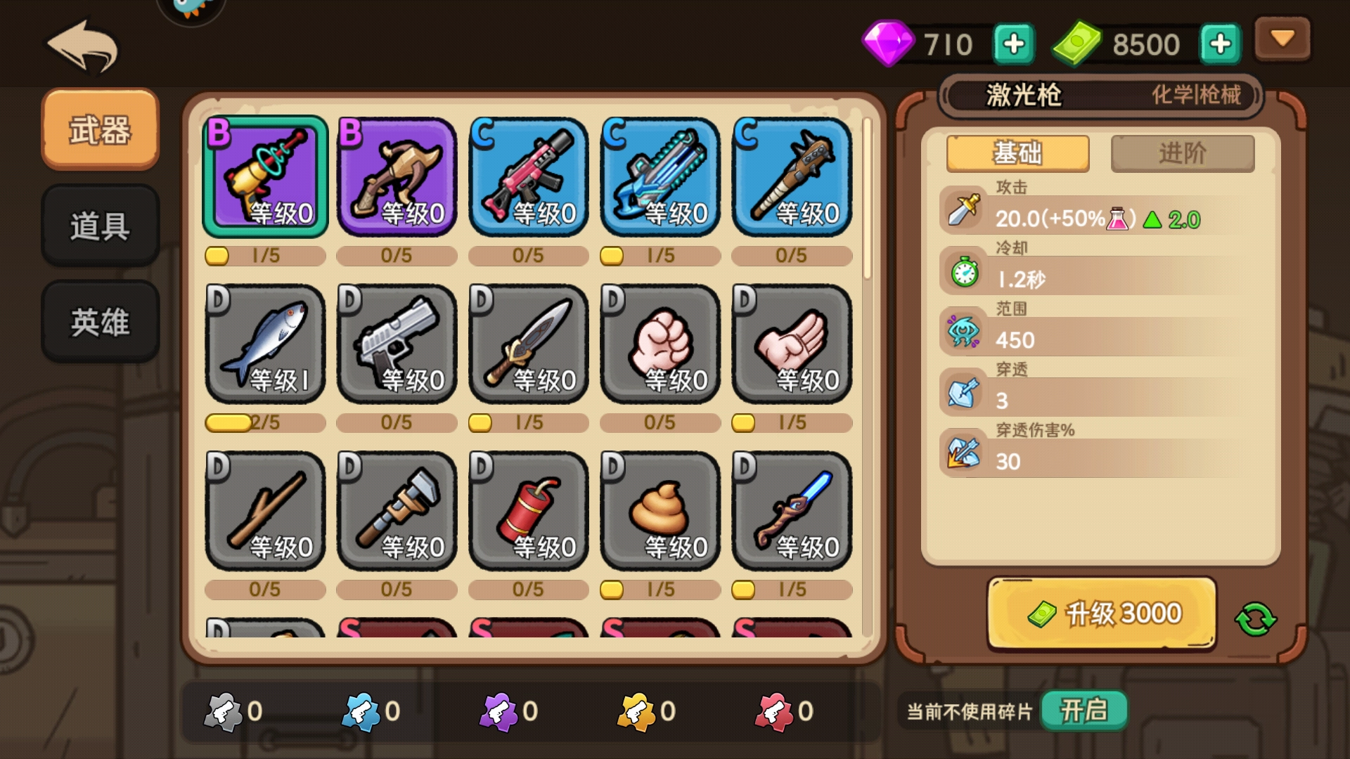尽量用来购买武器,相同的武器可以合成,伤害更高。