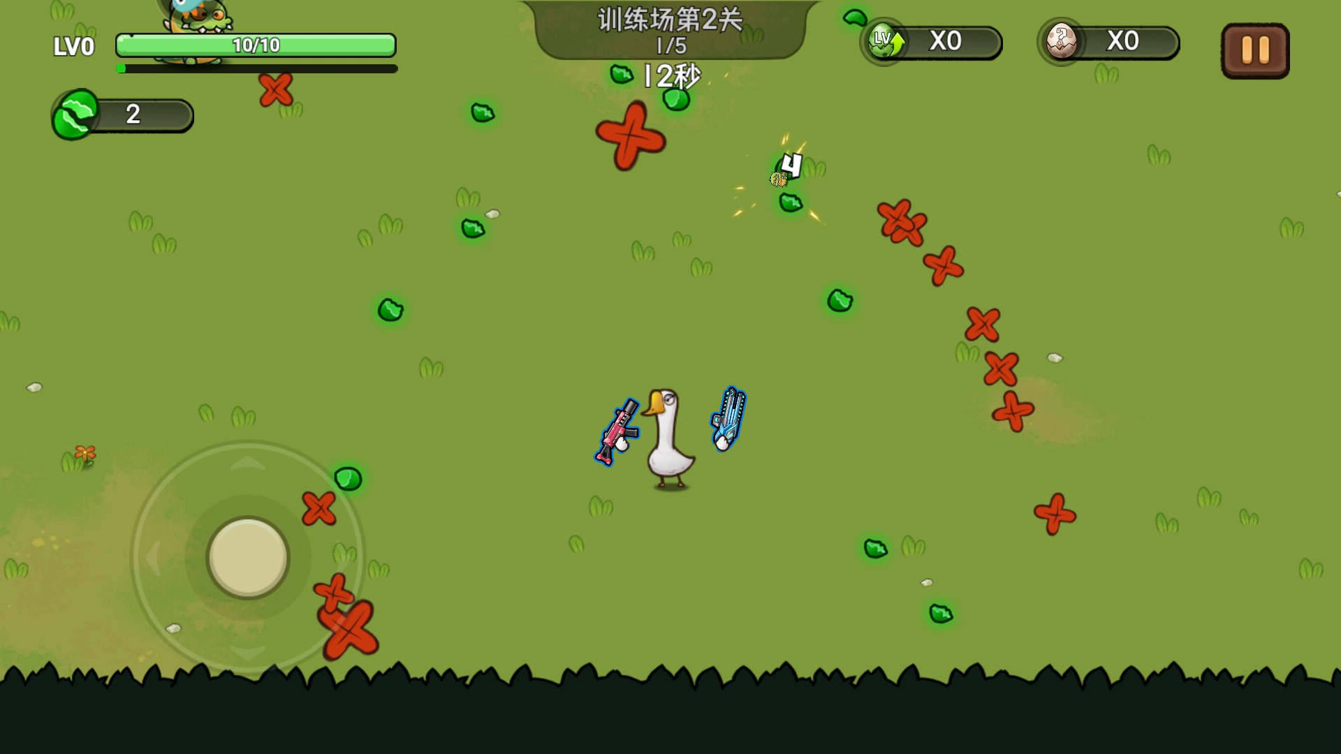 战斗时要持续移动躲避怪物,击杀后记得捡取地面上的绿色物品。