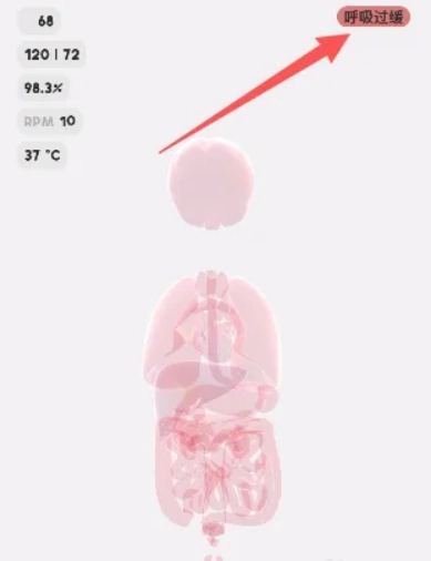 画面屏幕的右上角显示着人体模型的异常状态,就像此刻,人体正处于低血钾与低血糖的状态里。