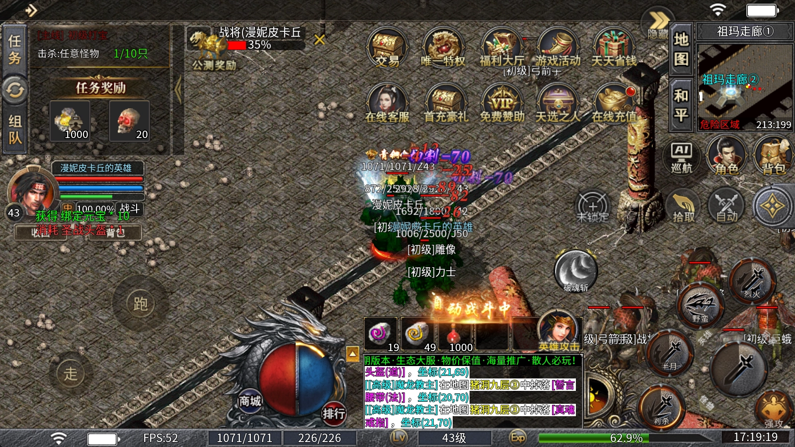 游戏里的爆率特别高,哪怕是小怪都有机会爆出终极装备,要是运气好爆出一件,直接就能强势崛起,玩的就是这种热血激情的感觉。