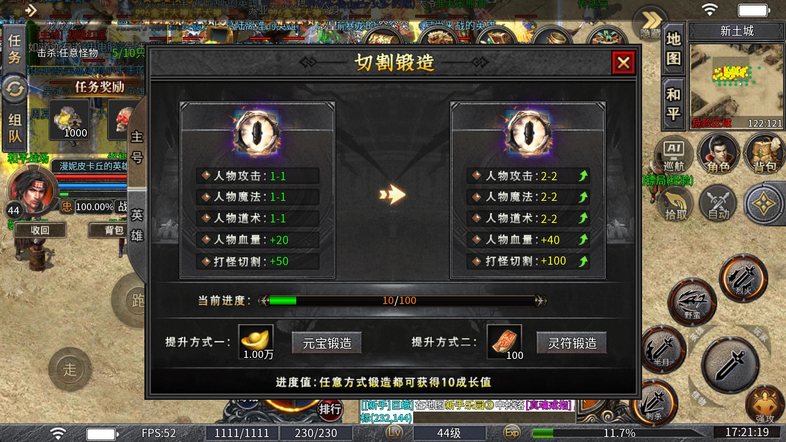 切割锻造玩法:消耗元宝或灵符即可升级,每提升一级不仅能增加攻魔道属性,还能提高切割伤害。