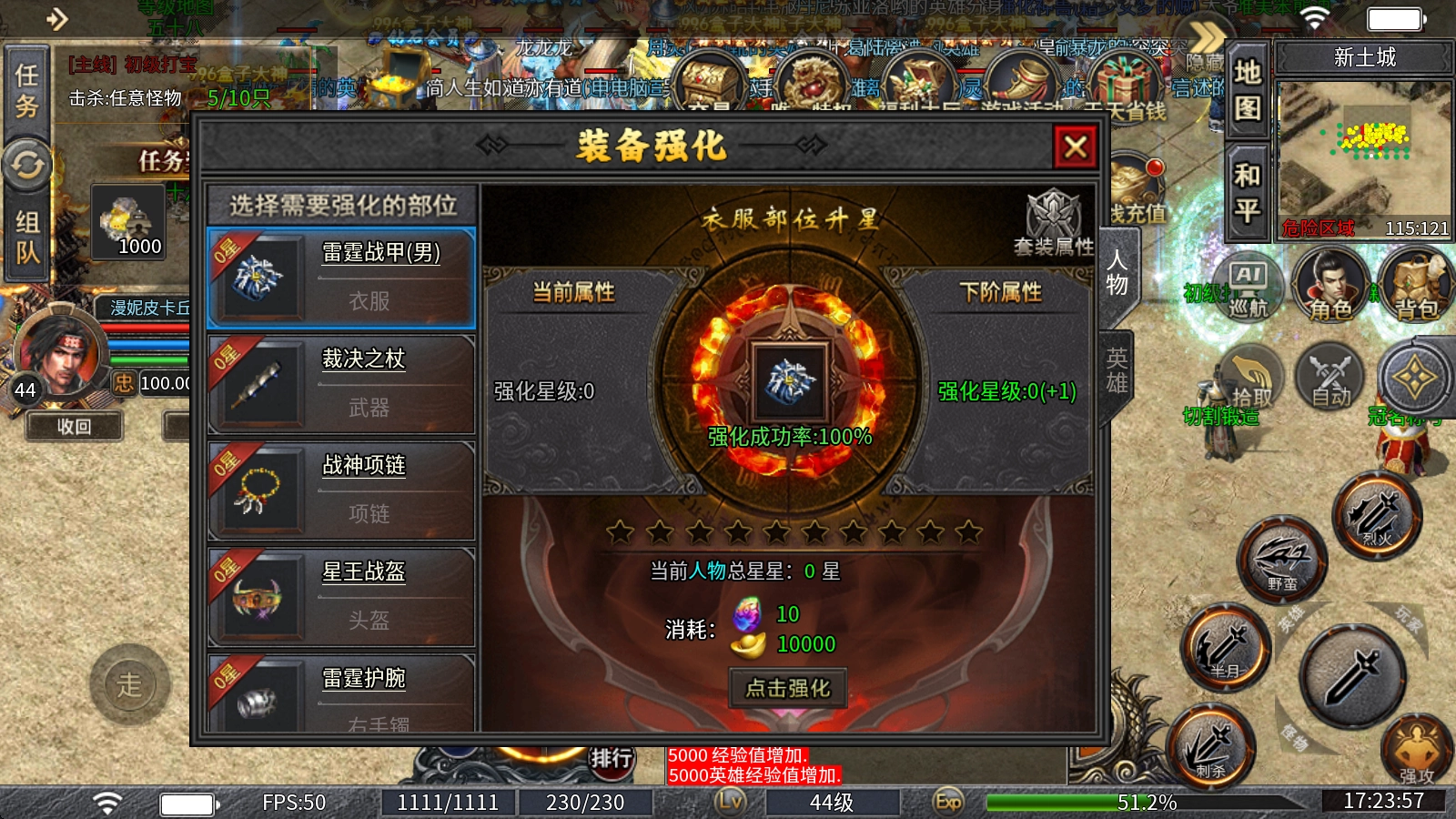 装备强化系统中,消耗元宝与易尚神石就能对装备进行强化操作,当全身装备强化达到特定星数时,还将解锁额外的属性加成。