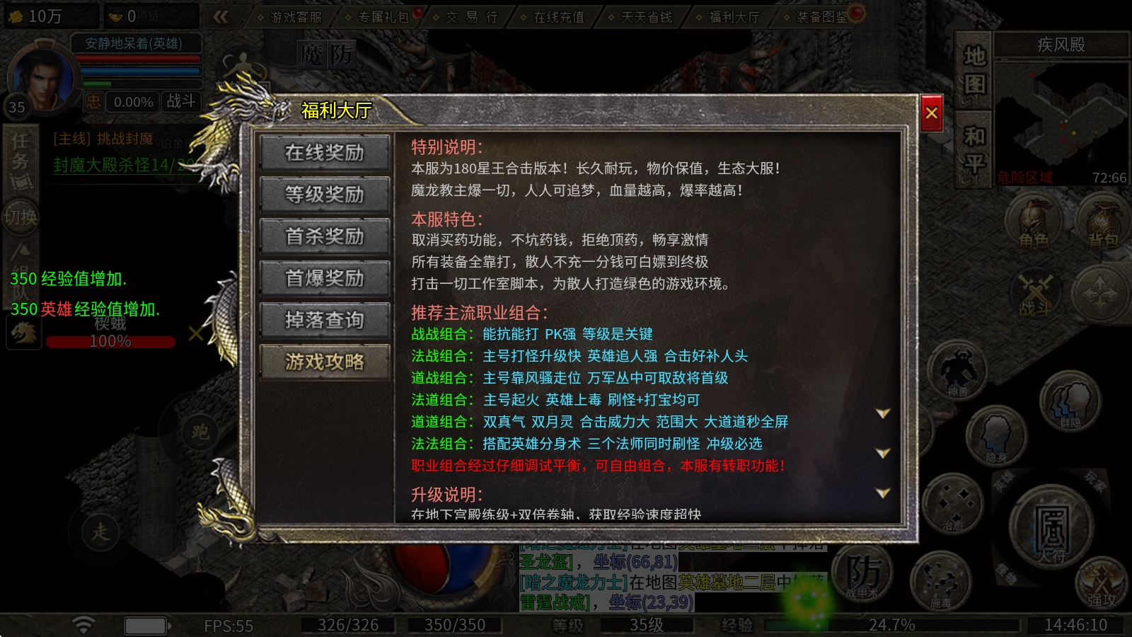 在地下宫殿练级+双倍卷轴,获取经验速度超快。