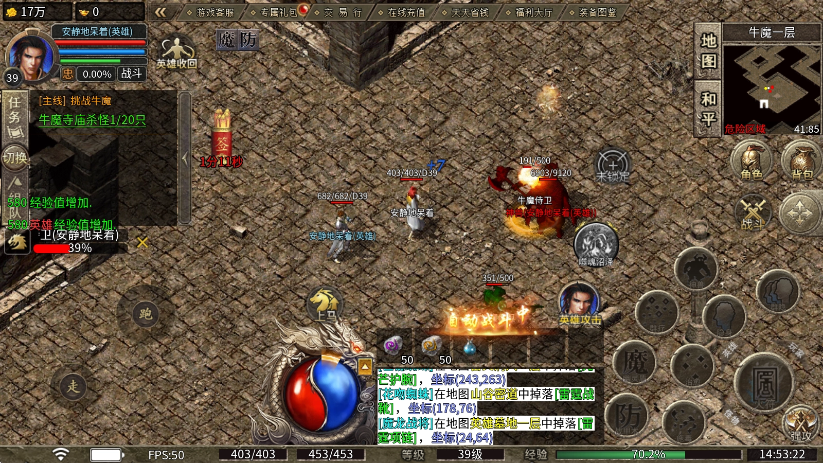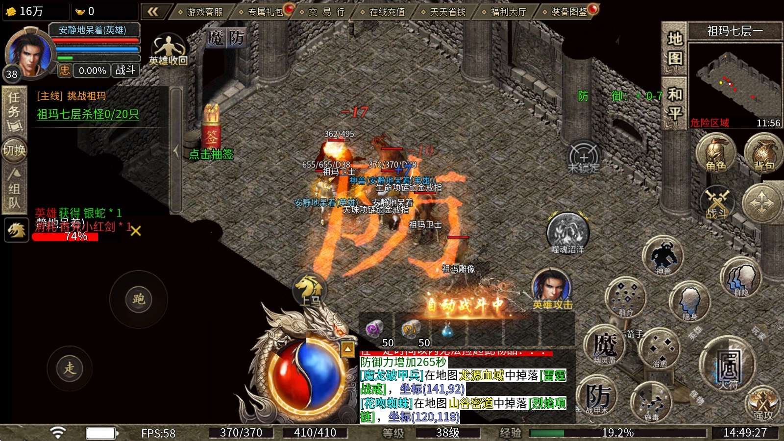 法道组合:主号起火,英雄上毒,刷怪+打宝均可。