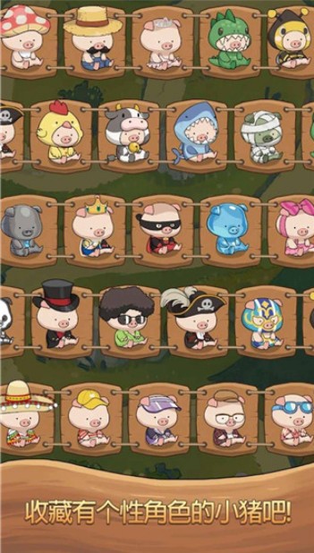 这款作品设计了超多可爱的小猪角色,还有各种不同的水果等元素可供玩家收集;它不仅拥有数量庞大的关卡,还打造出了广阔的世界地图;游戏挑战没有时间限制,玩家可以在毫无压力的状态下享受游戏乐趣,并且能收集到大量可爱的小猪角色,种类多达二十种以上。