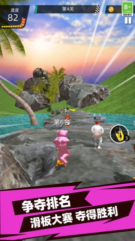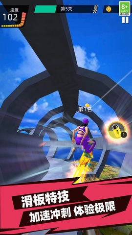 装备升级。借助游戏内的奖励与任务,收集资源以升级滑板装备,从而增强竞速表现。