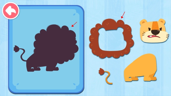 当我们着手把狮子拼图拼合成完整的狮子形象时,它还会教我们怎样辨别动物的性别。