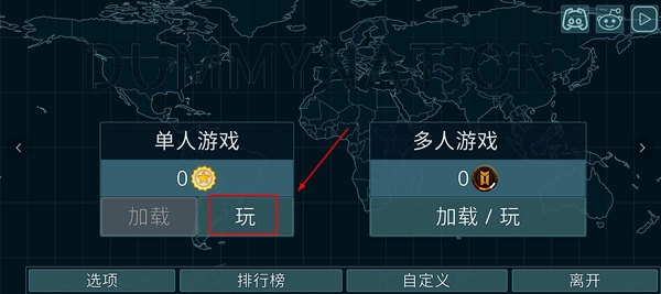 打开Dummynation中文版,进入后找到单人游戏模式,点击“玩”开始游戏。