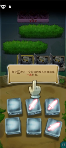 可以看到每一把刀剑对应的骰子都能对前排敌人发起攻击,并且造成一点伤害。