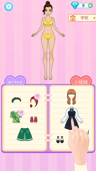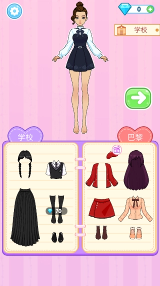 请留意右上角的提示信息,这次给出的提示是“学校”,所以得把娃娃装扮成学生的模样才行。