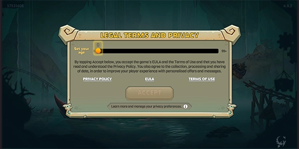 通常会进入下方的界面,我们可以滑动上方的进度条来调整年龄,需要将其滑动到18岁以上,然后点击下方的accept按钮。