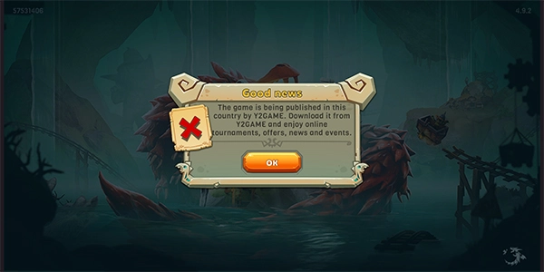 在本站下载并安装饥饿龙国际服后,若出现下方界面,说明当前IP被识别为中国地区。此时可通过断开网络连接或开启加速器来继续游玩;若加速器效果不佳,建议更换节点或其他加速器后再次尝试。