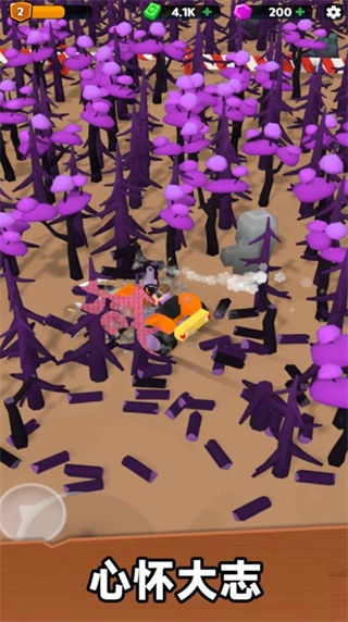 驾驶你的车辆在森林中四处砍伐木材,沿途会掉落不少原木,把它们收集起来就好。