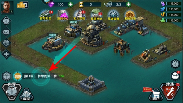 点击界面上的战役入口,查看当前的战役任务,跟进任务进度来获取相应的资源或奖励。
