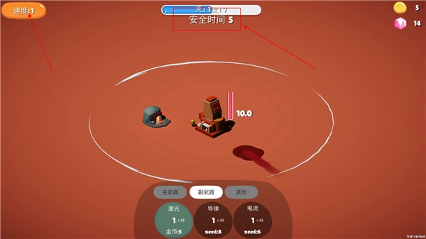 当上方的安全时间结束后,敌人就会发起进攻,玩家还能点击左上角的游戏速度按钮来加快游戏进程。