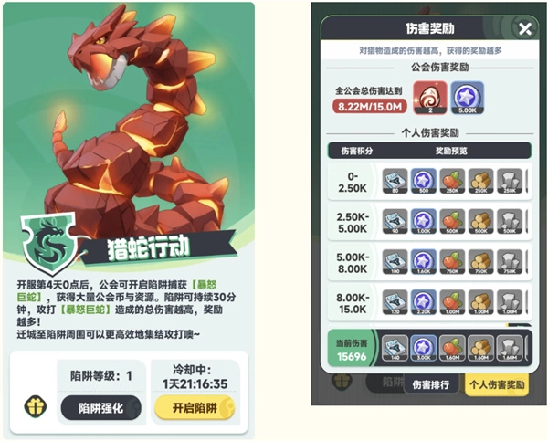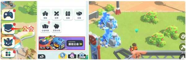 加入公会后,点击左下角的图标就能进入公会领地啦。这里有取之不尽的资源可以采集,而且采集效率会比其他地方高一些哦。前期要是在这里挂机采集,能收获不少资源呢。