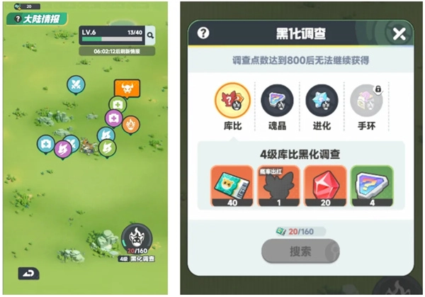 完成主线任务(主角等级需达到13级)、获取新大陆并结算里程碑事件后,我们就能搭乘飞艇前往领地之外的区域探索啦!点击屏幕右下角的全新玩法入口,即可搜索并讨伐黑化库比,成功挑战后将获得丰厚的资源奖励。