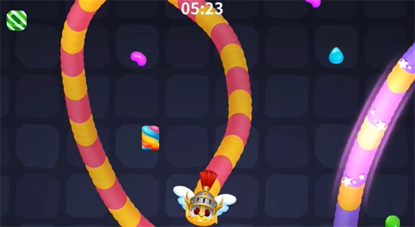 当你的长度足够长时,就能在地图里上演“以大欺小”的戏码啦。你可以把其他小蛇圈进自己的身体范围内,等它们自己撞上来,就能轻松拿到击杀和糖果奖励!