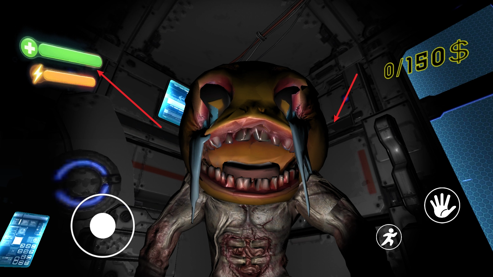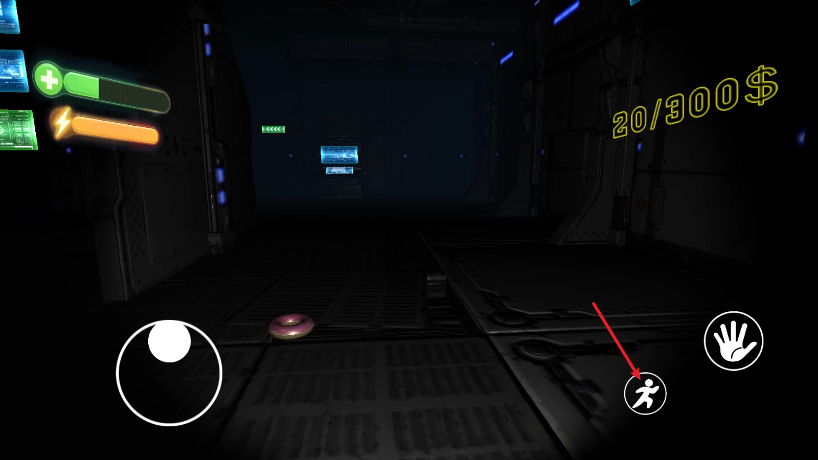 右下角的奔跑按钮可以让你加速前进。