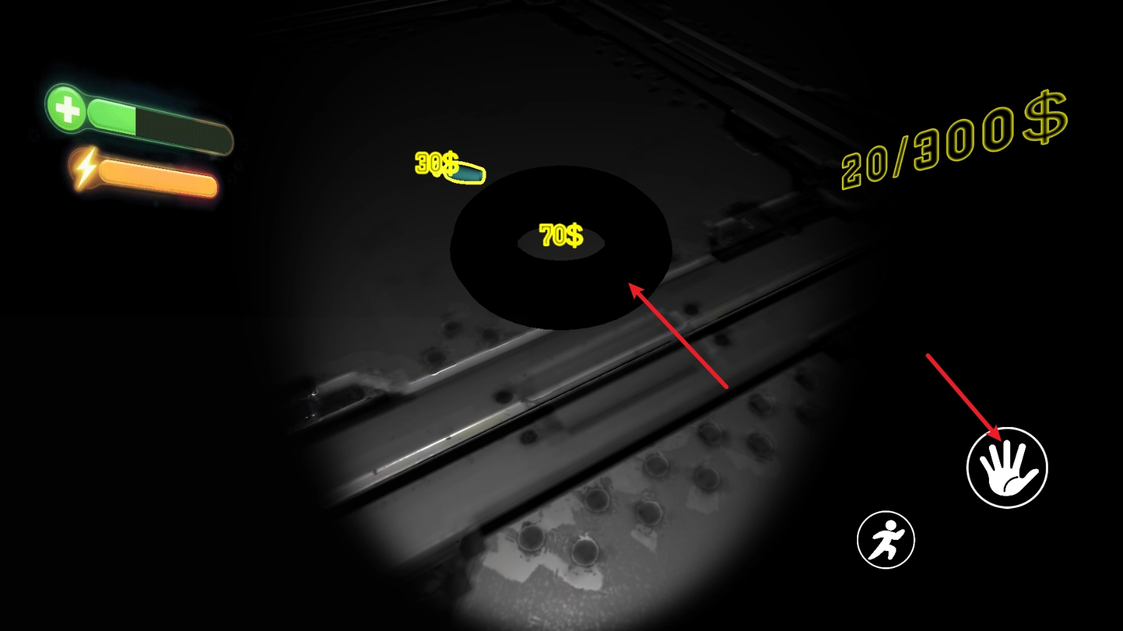 按住右边的小手就能拿起物品,接着往起点方向移动。