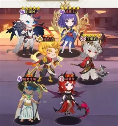 二、高手进阶阵容推荐:阿努比斯、莉莉丝、地藏王、孙悟空、牛魔王与日游神。