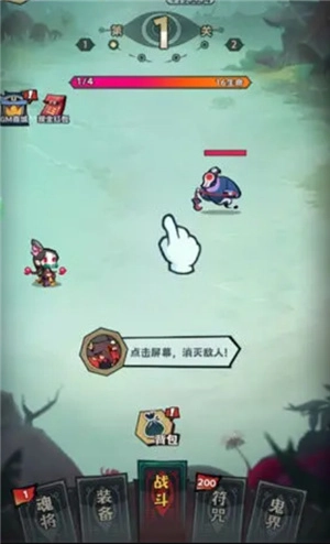 游戏的核心玩法是让玩家通过对不同魂将的排兵布阵来呈现回合制战斗模式,区别在于玩家能以点击的方式进行实际操作输出,且自身的输出在整个战斗中占比很大。