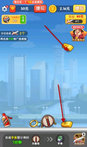通过合成飞机可以实现红包提现,利用飞机也能直接兑换提现奖励。