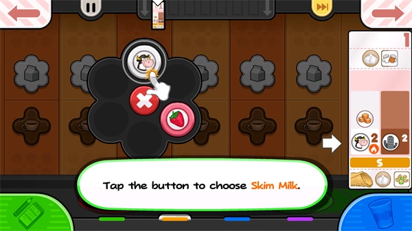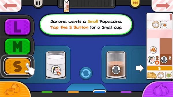 玩家要完成客人的订单,点击左侧的按键,就可以开始制作咖啡了。