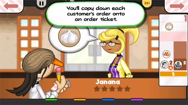 当当前咖啡的制作进度加上未开始制作的咖啡进程总和不超过2.5时,顾客是愿意等待的。举个例子,假设当前咖啡已经做到一半(进度计为0.5),之后又新增了2单咖啡订单,这种情况下即便继续完成当前这杯剩下的一半并上菜,多少还是会被扣一些分数。不过只要掌握好制作顺序来节省时间,多操作几次之后基本上就能做到不扣分了。