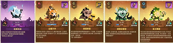 玩法思路:这套阵容的核心输出点只有山猫刀手,它不仅攻击力出色,还具备强力的群体伤害技能。而疾风先知、部落教官、部落征募官和夏之舞者这些角色,都是为了能在短时间内提升山猫刀手的数量并帮助其升星,从而让山猫刀手的输出能更快覆盖到敌方全场。