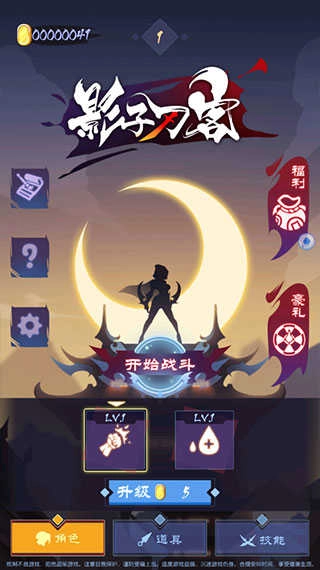 点击下方的角色、道具和技能这三个模块,消耗金币即可完成升级。