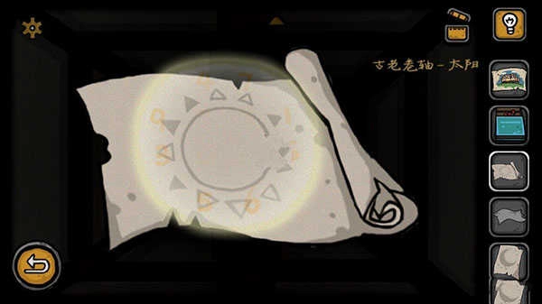在黑暗里先取出火把,之后就能拿出月之卷轴了;只要看到卷轴里的内容,这时候就会呈现出月牙的形状哦。
