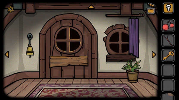 这个密码对应的操作是左3下、右5下、左2下,是不是有点让人摸不着头脑?这个密码是用来操作大门上那个铃铛的。我们得从莉莉的房间出发,一直往右切换场景,直到走到房子的大门处,就能看到那个铃铛了。接着按照密码提示,先向左摇3次铃铛,再向右摇5次,最后向左摇2次,这样就会掉落一把钥匙。这把钥匙正是我们衣柜的钥匙,用它打开衣柜就能拿到魔药和衣服了。